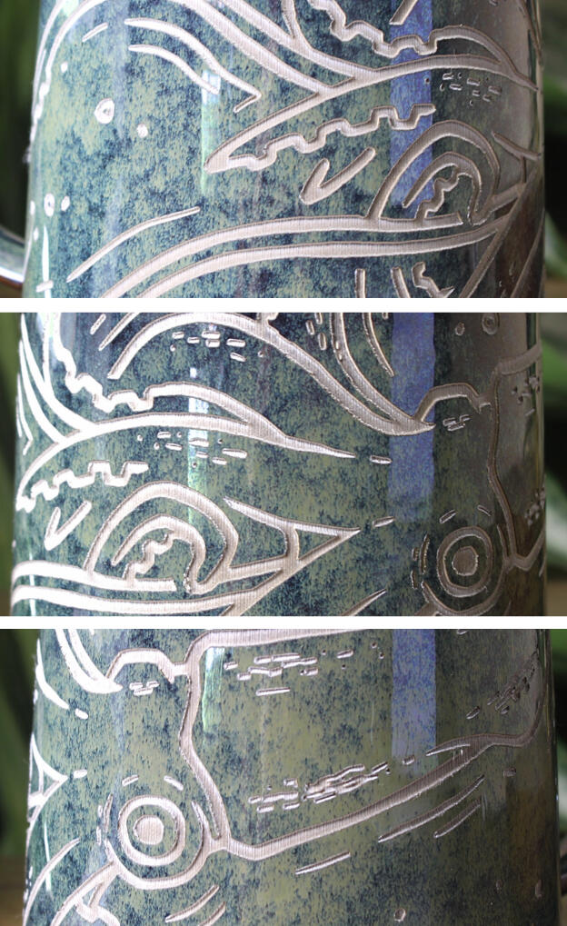 No. Laser engraving creates a permanent design that won’t wash off or fade.